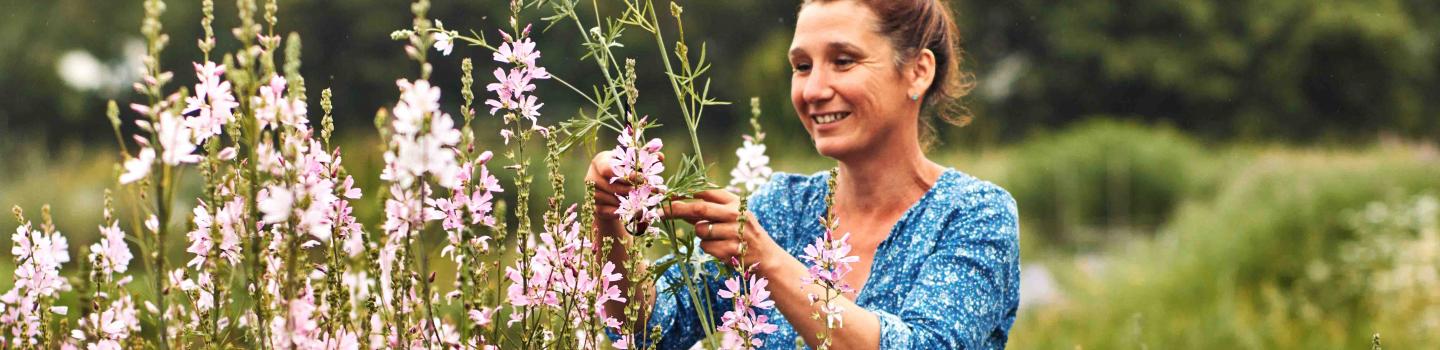 De Bio-bos is samengesteld met 100% biologische bloemen van Skal-gecertificeerde kwekers zoals Lara Velmans: "Ik vind het belangrijk om biologische bloemen in de schijnwerpers te zetten en een bijdrage te leveren aan een zo groot en divers mogelijk aanbod. Het is een prachtige uitdaging vanwege het spel met de natuur en gespecialiseerde kweektechnieken."