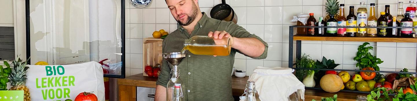 De laatste, en misschien wel leukste stap van het maken van kombucha is het toevoegen van smaken. Jiri laat je zien hoe je met verschillende biologische producten heerlijke kombucha smaken kunt creëren.